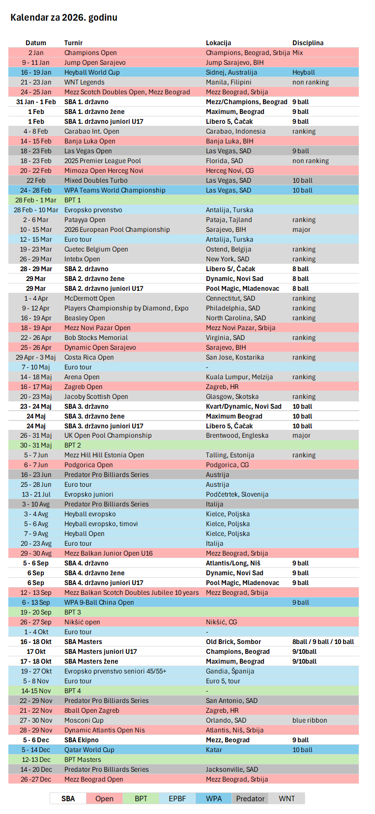 Kompletan kalendar takmičenja sa EPBF, BPT i Open turnirima